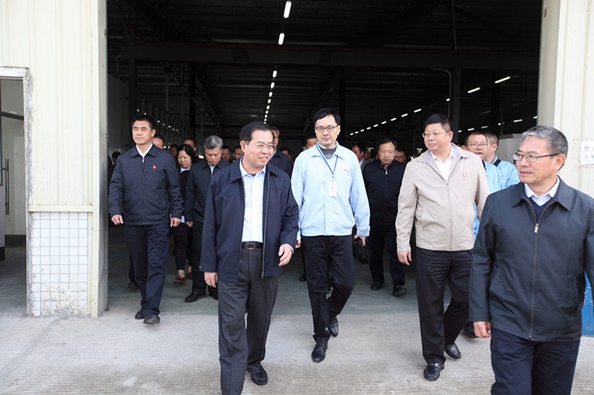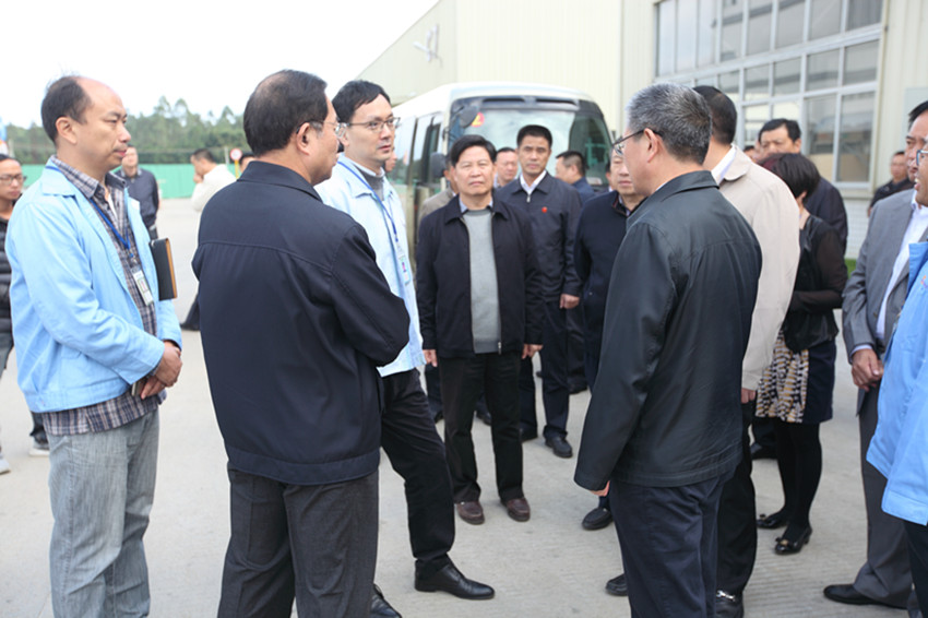 2016年11月10日下午,清远、英德两级市委书记、市长带领政府相关领导到英德公司进行现场调研,视察我公生产现场和园区规划建设情况。