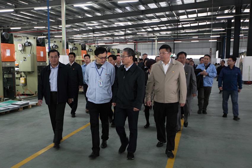 当日,清远市委书记葛长伟、市长郭锋一行来到我公司装配大楼前,公司总经理刘行先生进行了热情的迎接,首先介绍了公司的整体规划和当前的生产情况,并陪同葛书记一行先后参观了我公司注塑、五金 、装配生产车间。